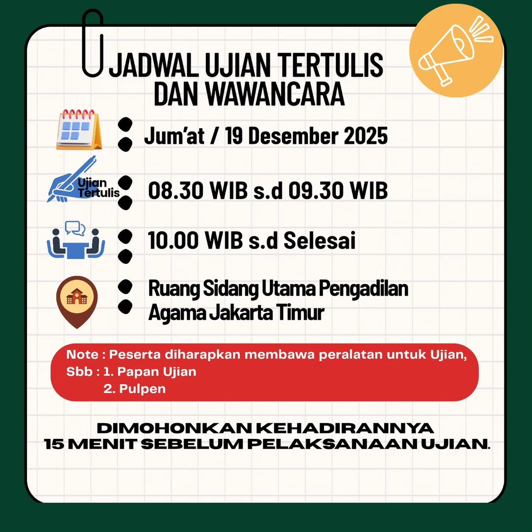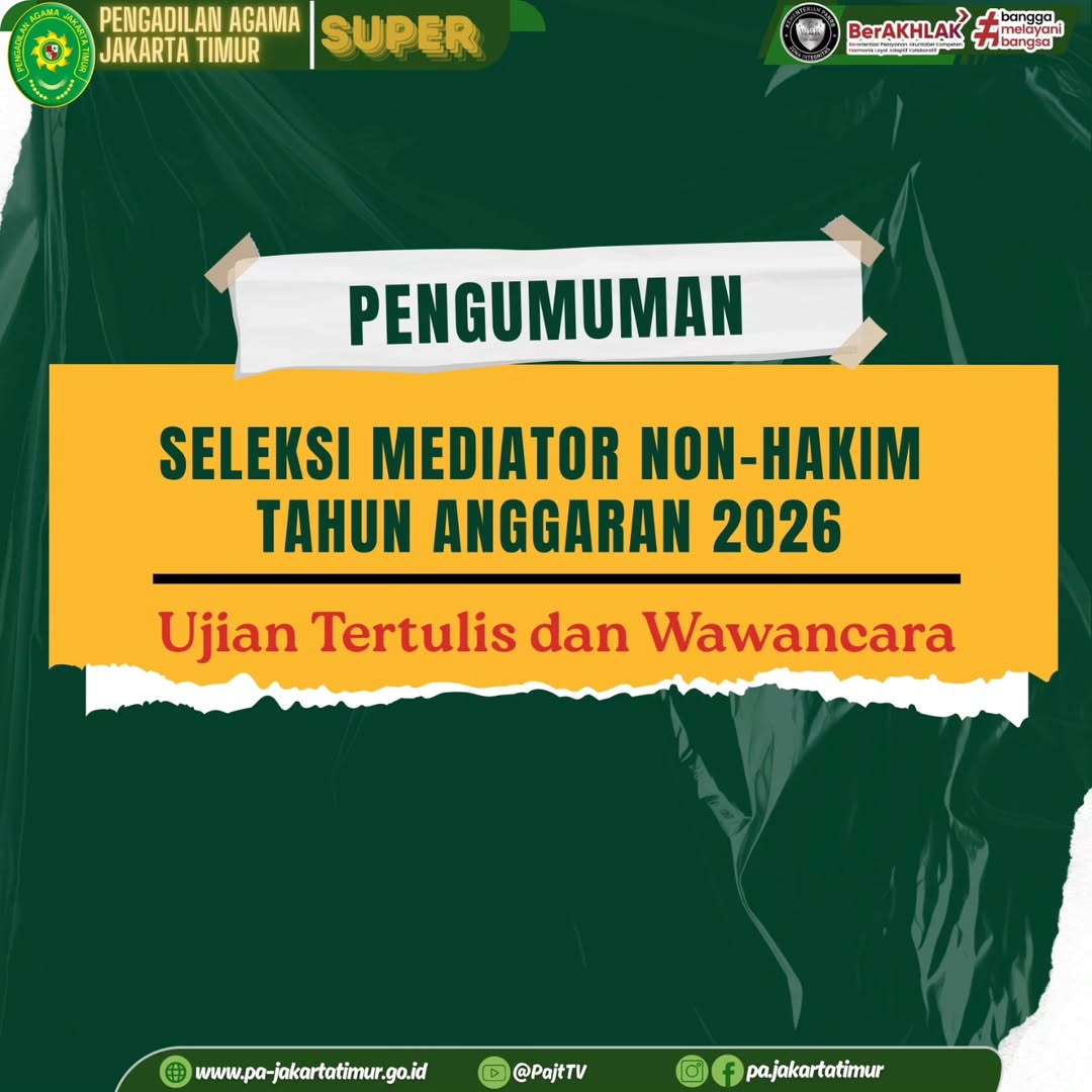 Jadwal Seleksi Tertulis dan Wawancara Mediator Non Hakim Tahun 2026