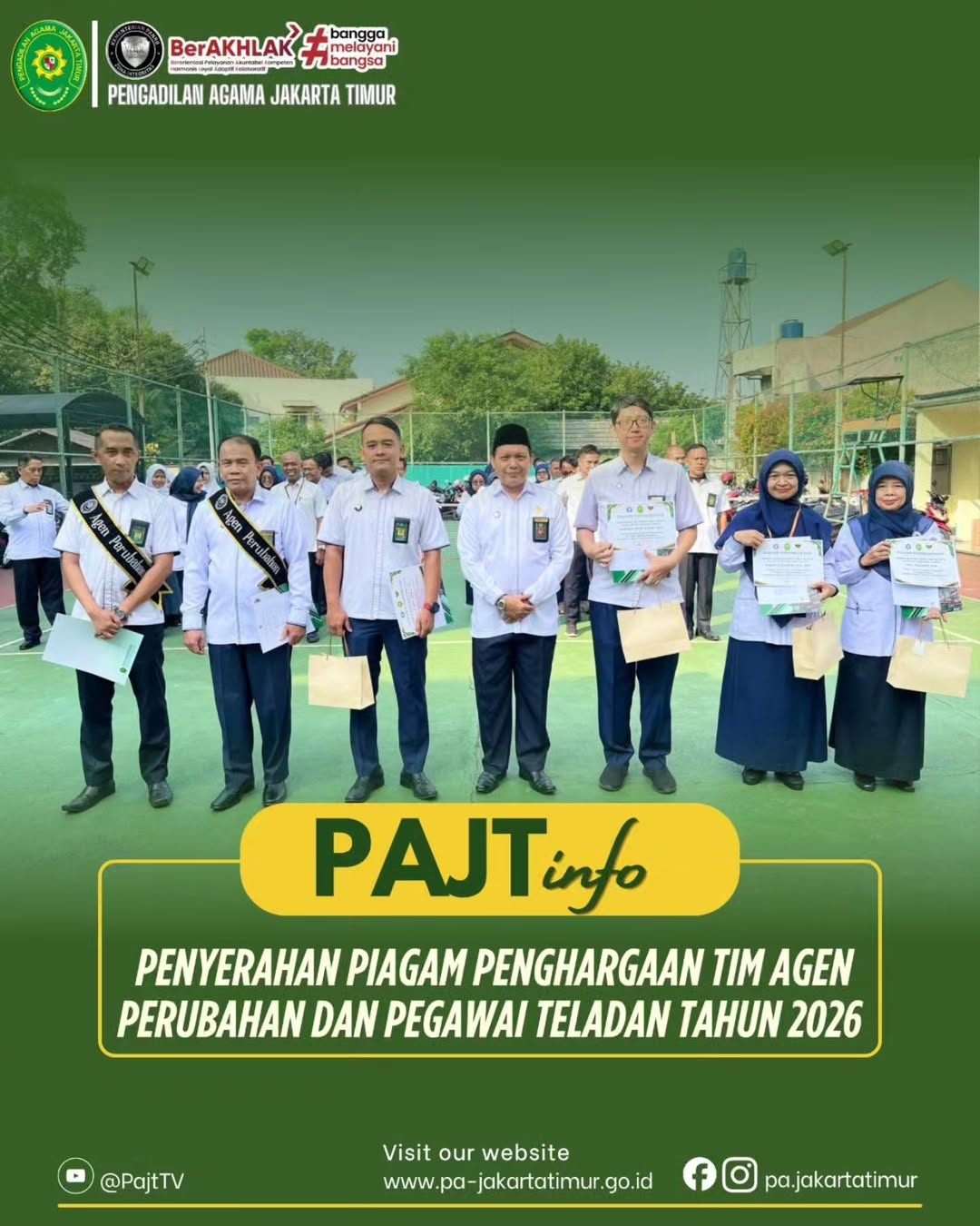 Para Agen Perubahan dan pegawai teladan memiliki tugas untuk memberikan keteladanan dan motivasi bagi pegawai lain untuk mewujudkan Pembangunan Zona Integritas di Pengadilan Agama Jakarta Timur, sekaligus menjadi inspirasi dalam menciptakan lingkungan kerja yang adaptif, inovatif, dan berorientasi pada pelayanan masyarakat.